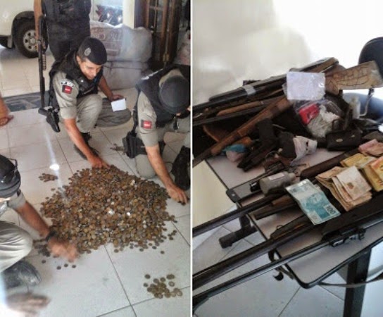 Na ação houve troca de tiros e 4 elementos foram presos e outros estão foragidos. Foram apreendidas uma pistola 380, uma espingarda 12, uma espingarda 28, um revolver e mais quatro armas, ainda uma quantia em dinheiro.