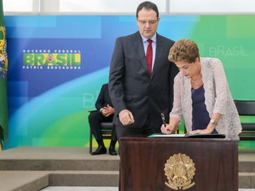 A presidente Dilma Rousseff acaba de dar posse aos ministros da Fazenda, Nelson Barbosa, e do Planejamento, Orçamento e Gestão, Valdir Simão, em solenidade no Palácio do Planalto. Na sexta-feira (18), Dilma fez a substituição de Joaquim Levy por Barbosa no comando do Ministério da Fazenda. Barbosa era ministro do Planejamento. Para o lugar de Barbosa, a presidente nomeou o ministro da Controladoria-Geral da União (CGU), Valdir Simão.