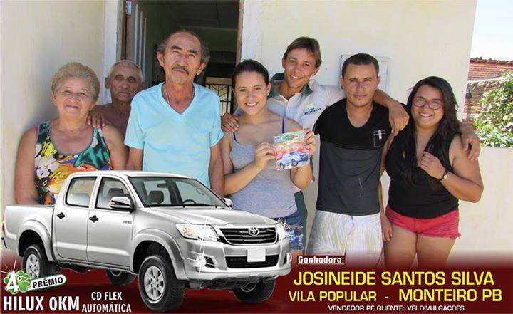 No último domingo (06), a cidade de Monteiro, maior município do Cariri Paraibano, foi confirmada como a mais nova capital da sorte na Paraíba. De lá, saíram 3 dos 4 prêmios sorteados pelo Bilhetão esta semana, entre eles uma Hilux 0Km tirada sozinha pela monteirense Josineide Santos Silva, moradora da Vila Popular.