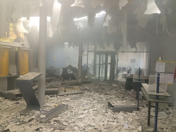 Durante a ação, um grupo de pessoas que passava pela rua onde fica o banco foi feito refém, mas ninguém ficou ferido, conforme a polícia. Ainda de acordo com a PM, com base no relato das vítimas, o bando era composto por pelo menos 10 homens fortemente armados. Depois de explodir a agência, os bandidos liberaram os reféns e fugiram.
