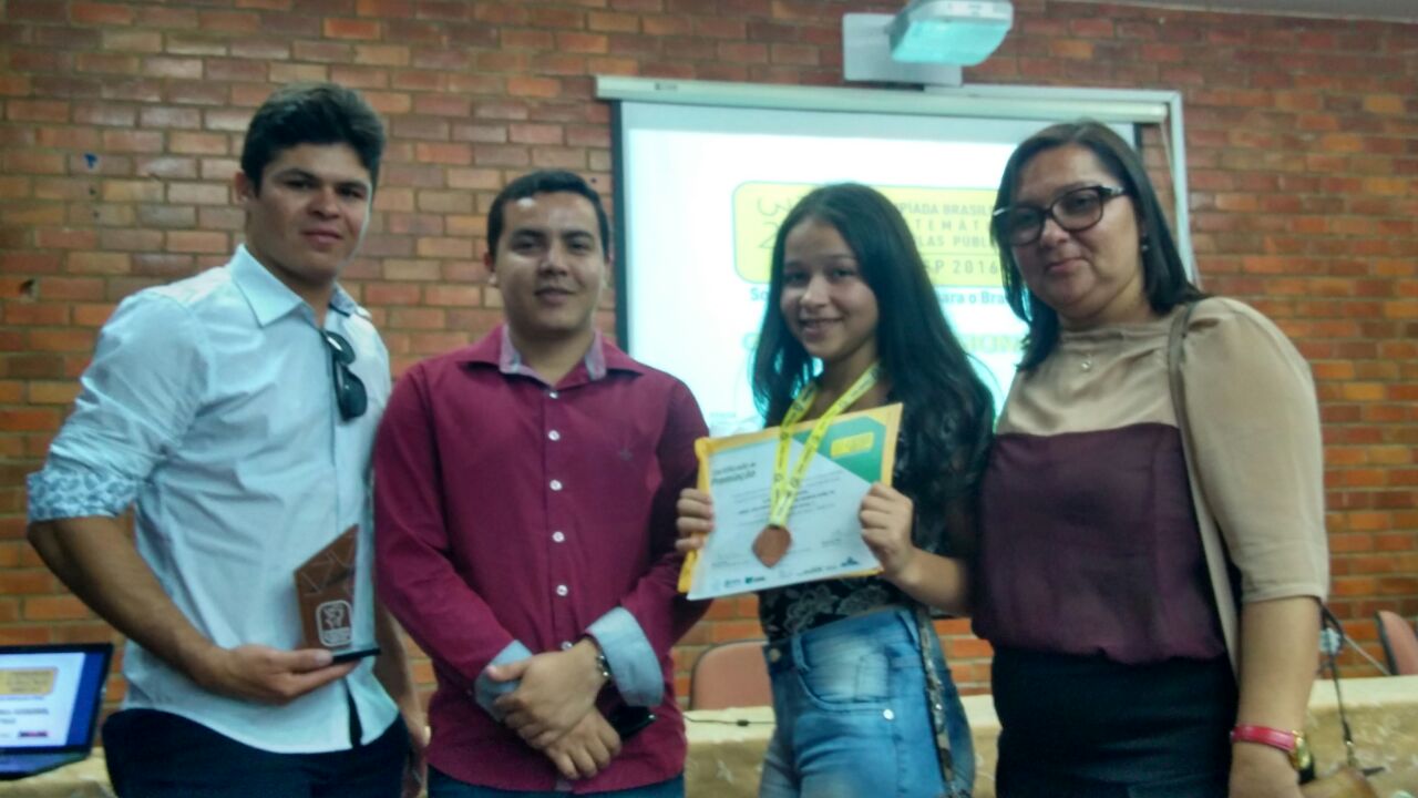Aline recebeu a premiação na última sexta-feira (25), no auditório da UFCG, em Campina Grande, na cerimônia regional da Olimpíada de 2016. Ela estava acompanhada dos professores, Aran Jônatas, Isaías Pereira e de sua mãe, Ednalva Soares.