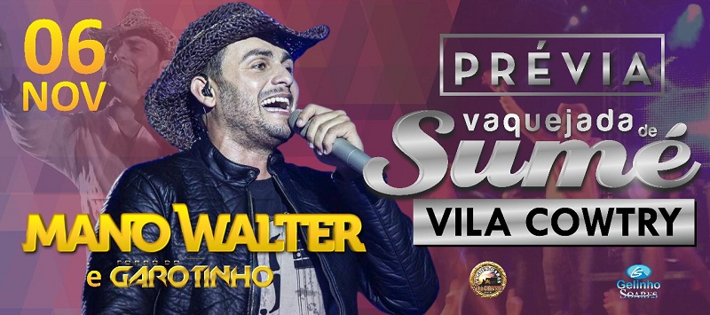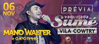 Acontece no próximo dia 6 de novembro, no Parque Vila Cowtry, em Sumé, um grande show de Mano Walter e Forró do Garotinho.