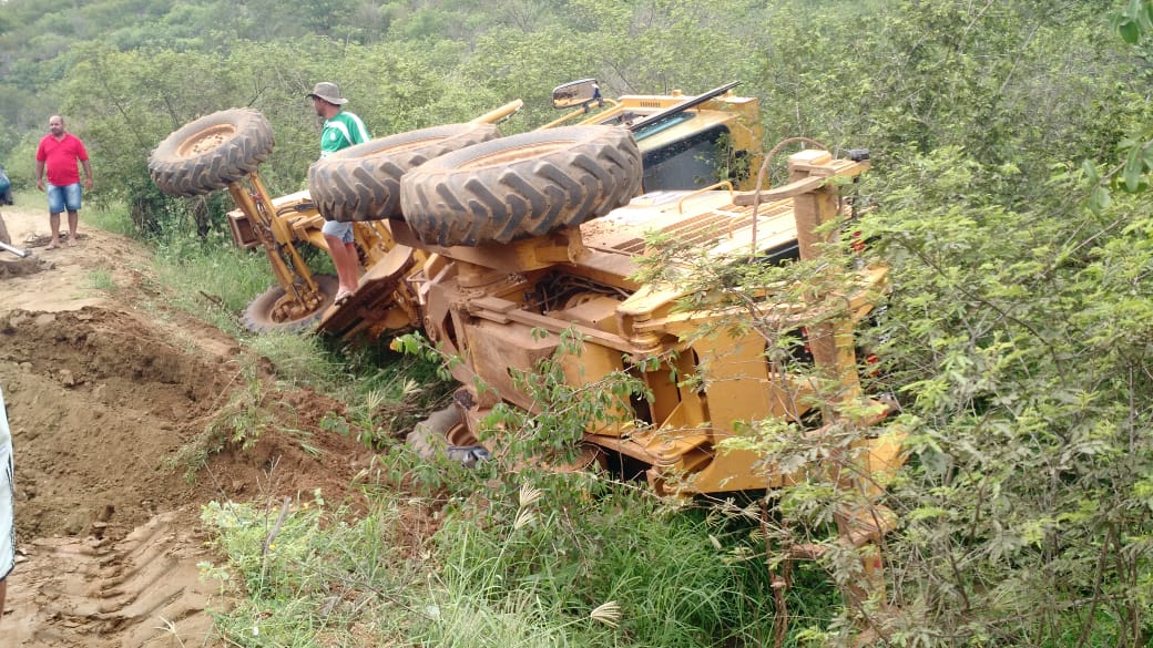 Máquina da prefeitura tomba na zona rural de Camalaú