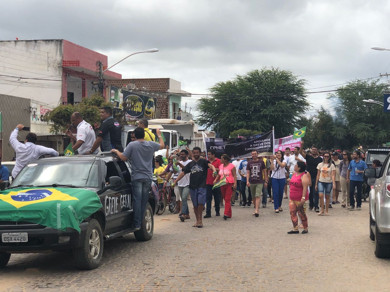 A população de Monteiro foi às ruas na manhã desta segunda-feira, 28, em apoio à greve dos caminhoneiros. Centenas de pessoas com faixas de apoio e bandeiras do Brasil.