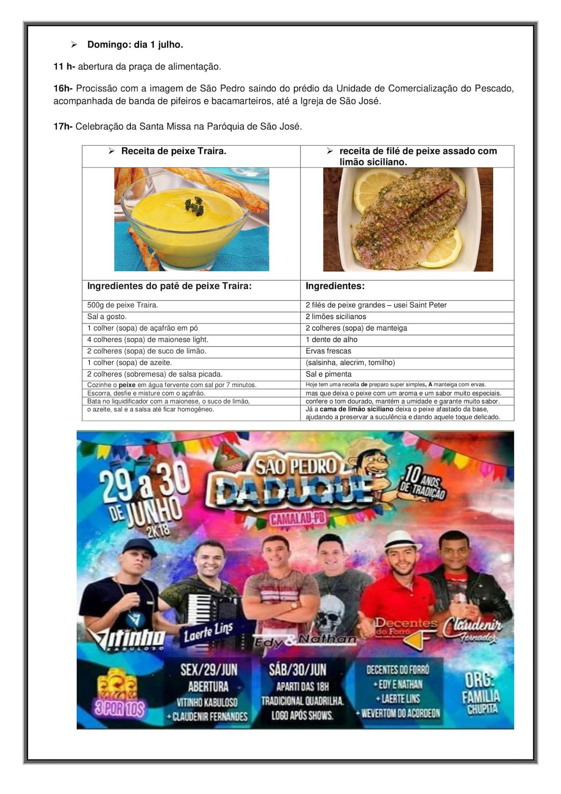 Festival do Peixe em Camalaú – PB, onde será comemorado o dia de São Pedro.