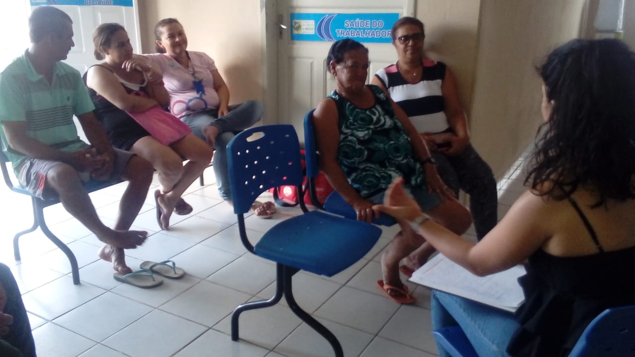 Nesta ocasião, a psicóloga do NASF Lais Barbosa, juntamente com os ACS’s facilitaram a roda de conversa, que teve como objetivo explicar como serão as sessões e conhecer os participantes.
