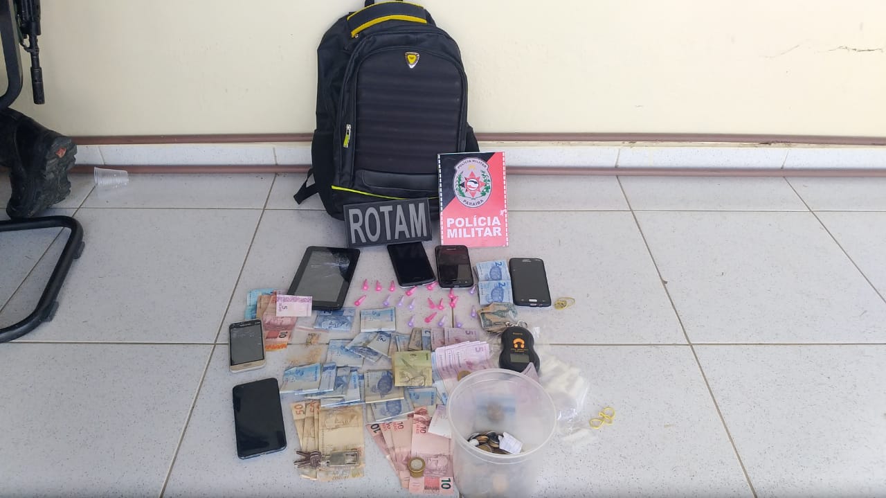 O acusado disse que adquiriu a droga em Serra Branca, a outro homem, e ao ser indagado se tinha mais drogas em sua casa, o suspeito levou a equipe policial até a casa dele, onde permitiu a entrada dos policiais, e após buscas foram encontrados 02 pinos vazios de cocaína, 01 balança de precisão, sacos plásticos para embalar a drogas a quantia de 263,00 em cédulas de todos os valores e 30,50 em moedas, além de celulares e um tablet.