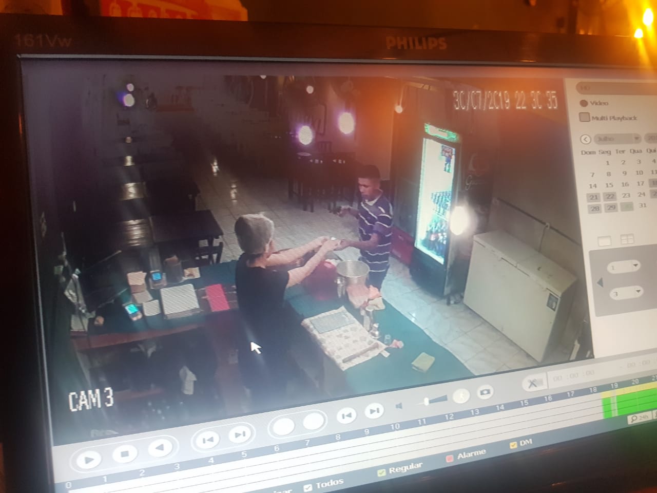 Conforme imagens de uma câmera de segurança, um homem armado chegou no local e rendeu os funcionários, subtraindo aparelhos celulares. Nenhuma quantia em dinheiro foi levada.