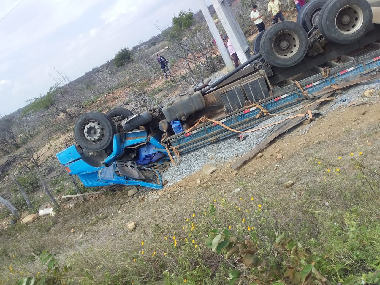 O motorista, de acordo com informações preliminares, é conhecido popularmente como Dedeca. O caminhão estava carregado de brita e virou. O motorista morreu na hora.