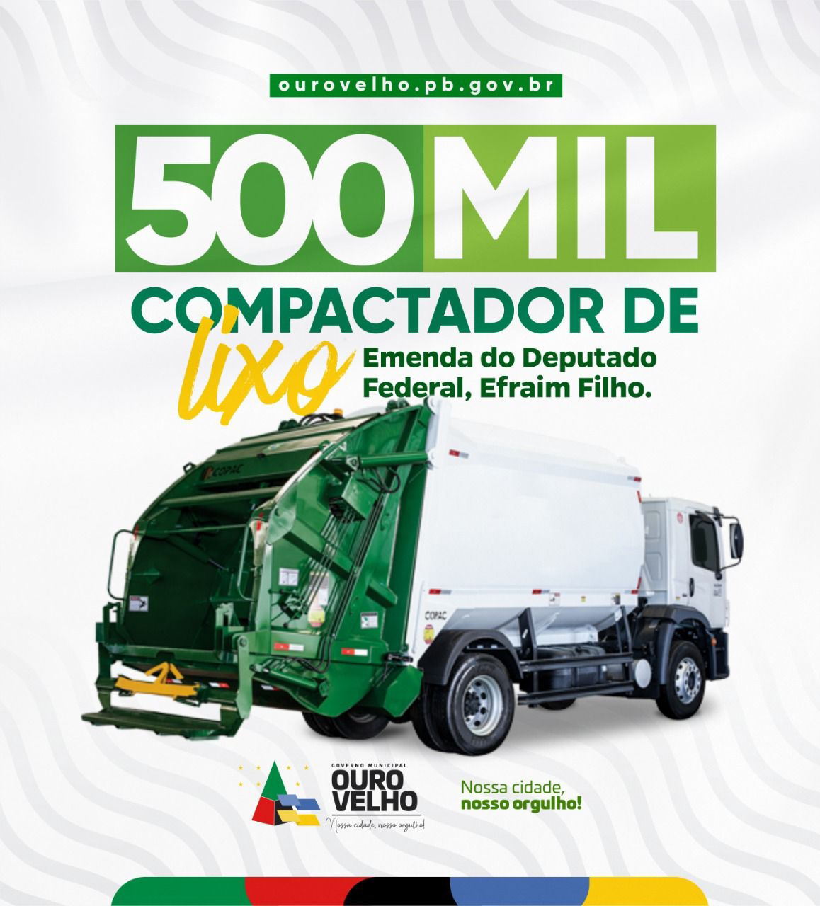 O prefeito de Ouro Velho, Dr. Augusto Valadares, anunciou nesta terça-feira (15), a conquista de uma emenda parlamentar para aquisição de um caminhão compactador de lixo para o municípip.