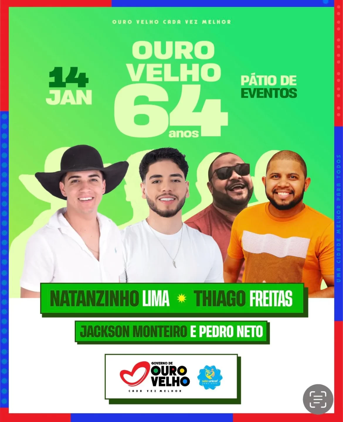 O prefeito de Ouro Velho, Dr. Júnior, anunciou oficialmente a programação completa para a celebração dos 64 anos de Emancipação Política do município, que acontecerá no próximo dia 14 de janeiro. O evento será realizado no Pátio de Eventos da cidade e promete reunir moradores e visitantes para uma festa de grande porte, com atrações musicais de destaque.