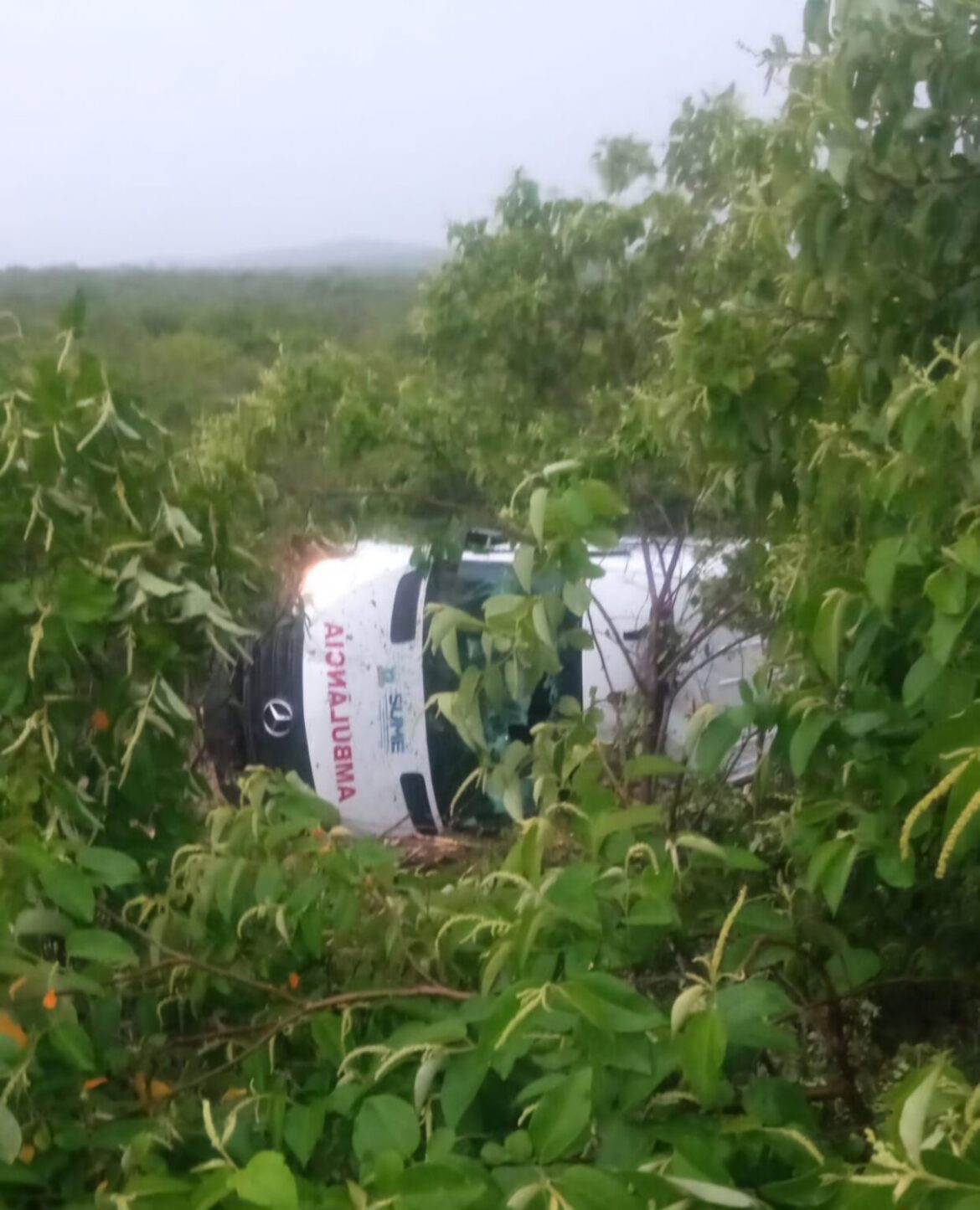 Ambulância da cidade de Sumé capota na BR-412 e equipes de emergência são mobilizadas para atender ocorrência