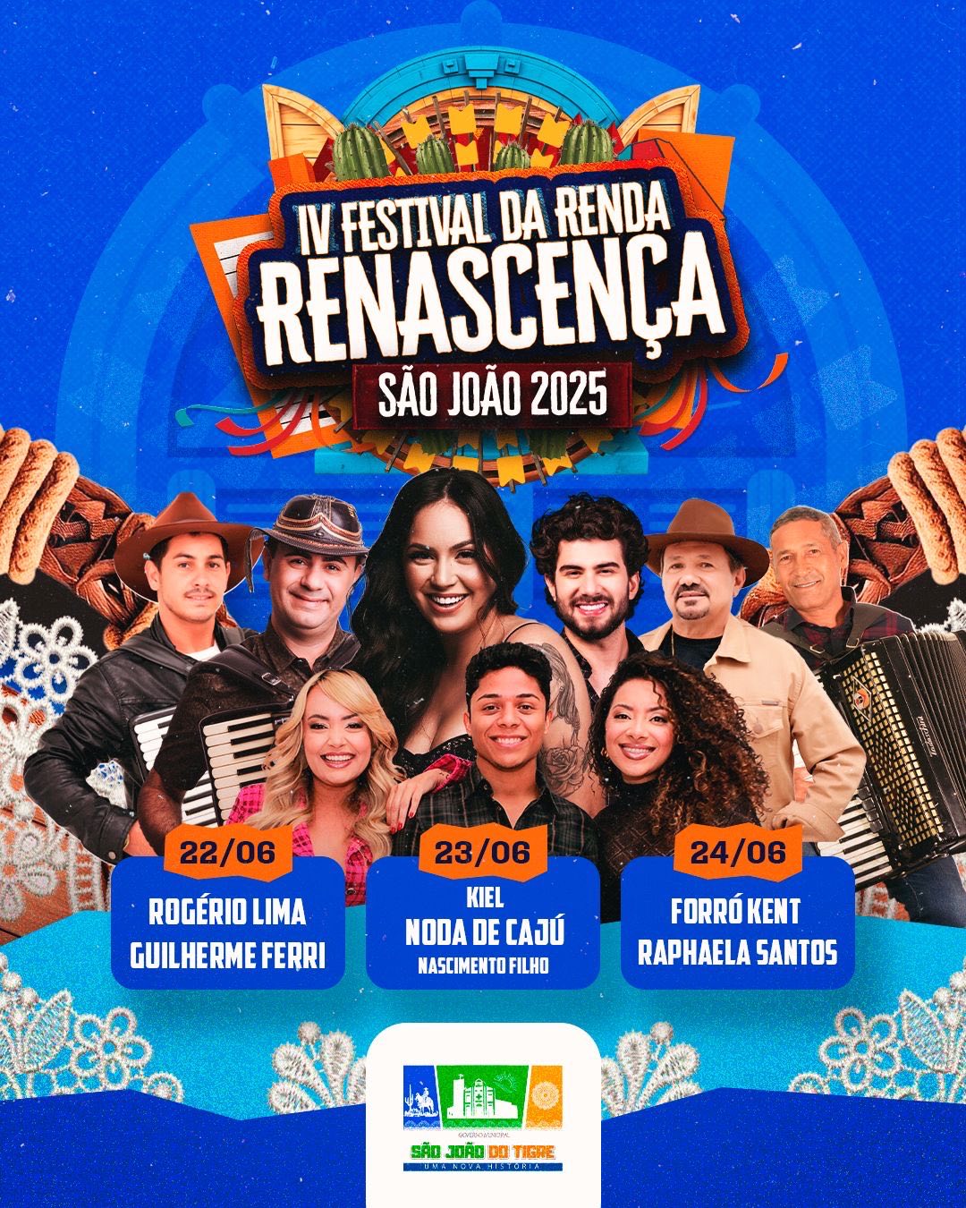 Em São João do Tigre: 4º Festival da Renda Renascença começa neste domingoIdealizado pela gestão do Prefeito Márcio Leite, o 4º Festival da Renda Renascença do município de São João do Tigre começa neste domingo (22), com shows em praça pública.