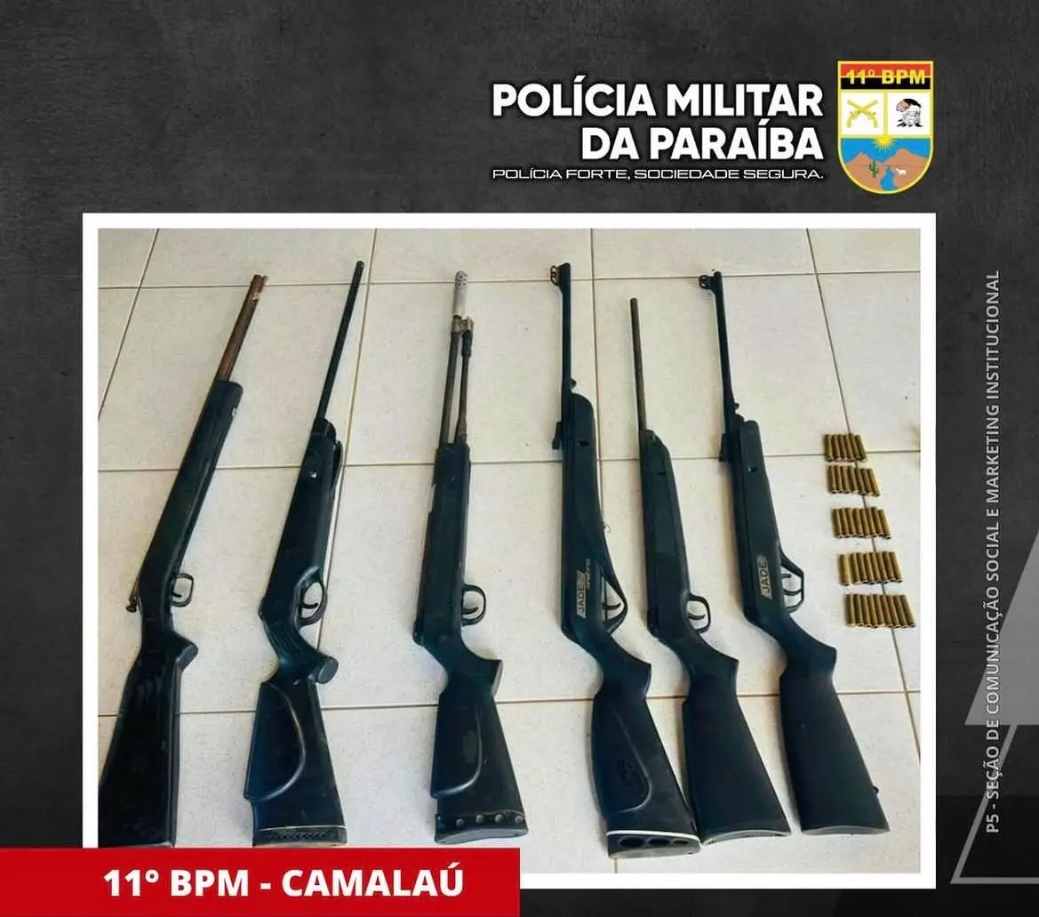 Durante a Operação Cidade Segura, realizada nesta sexta-feira (10), policiais militares do 11º Batalhão apreenderam seis armas de fabricação artesanal e conduziram um indivíduo por posse ilegal de arma de fogo, na zona rural de Camalaú, no Sítio Pitombeira.